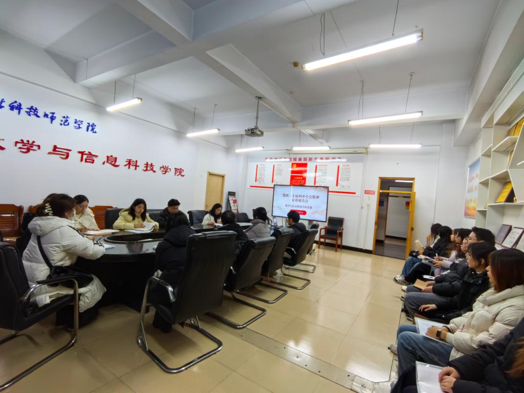 2025年12月4日,tyc7111cc太阳成集团在1001会议室举行党的二十届四中全会精神宣讲报告会。学院党委书记杨崇泽作宣讲报告,30余名学生党员代表参加宣讲会。