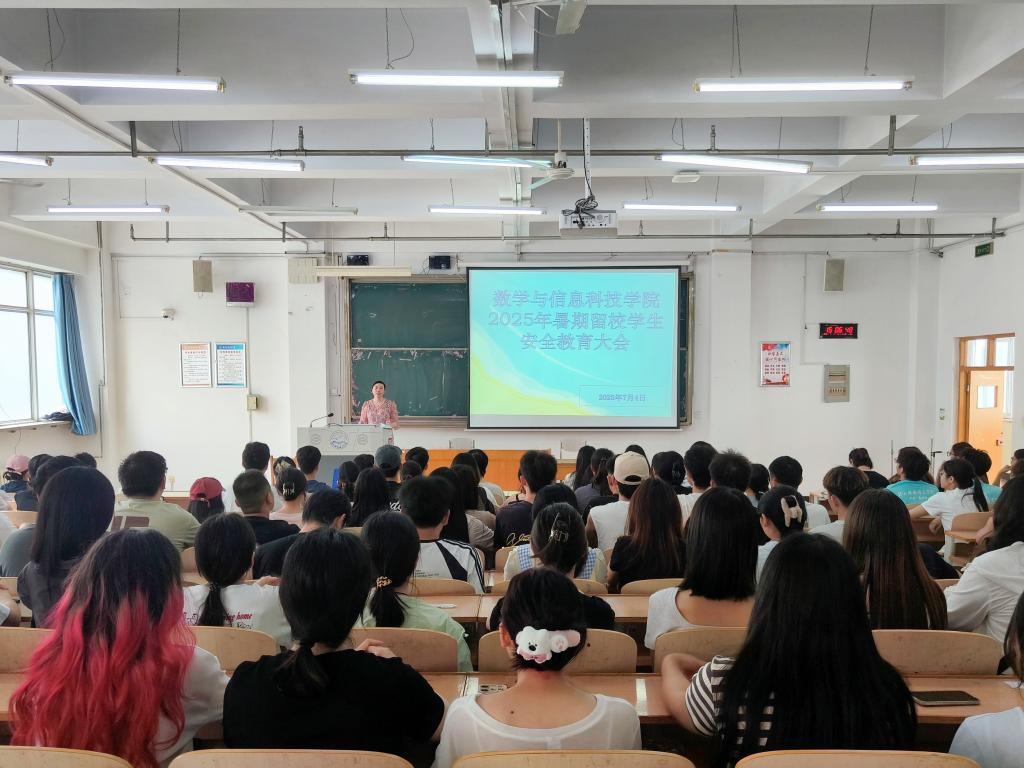 2025年7月4日下午,tyc7111cc太阳成集团于逸夫楼B206组织召开了2025年暑期留校学生安全教育大会。学院学工办主任、学生公寓综合治理与信息管理负责老师、留校学生班主任、全体留校学生参加了会议。
