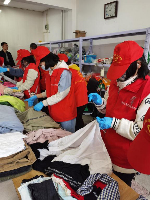 在学院青年志愿者协会的精心组织下,共召集志愿者15名。活动首先在海港区东港里小区老年服务站进行,在负责人说明整理爱心衣物的注意事项后,志愿者们将近期收集的来自社会爱心人士捐赠的衣物进行筛选、消毒,并根据季节、性别、年龄段等进行精细分类、包装。随后志愿者把整理好的衣物带到附近工人北里社区进行备用,并拿出一部分衣物悬挂在爱心墙上,以供有需要的人士选取。