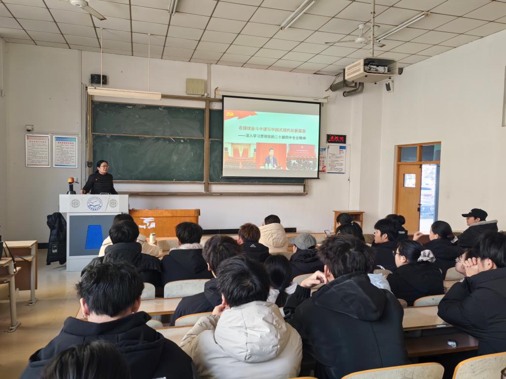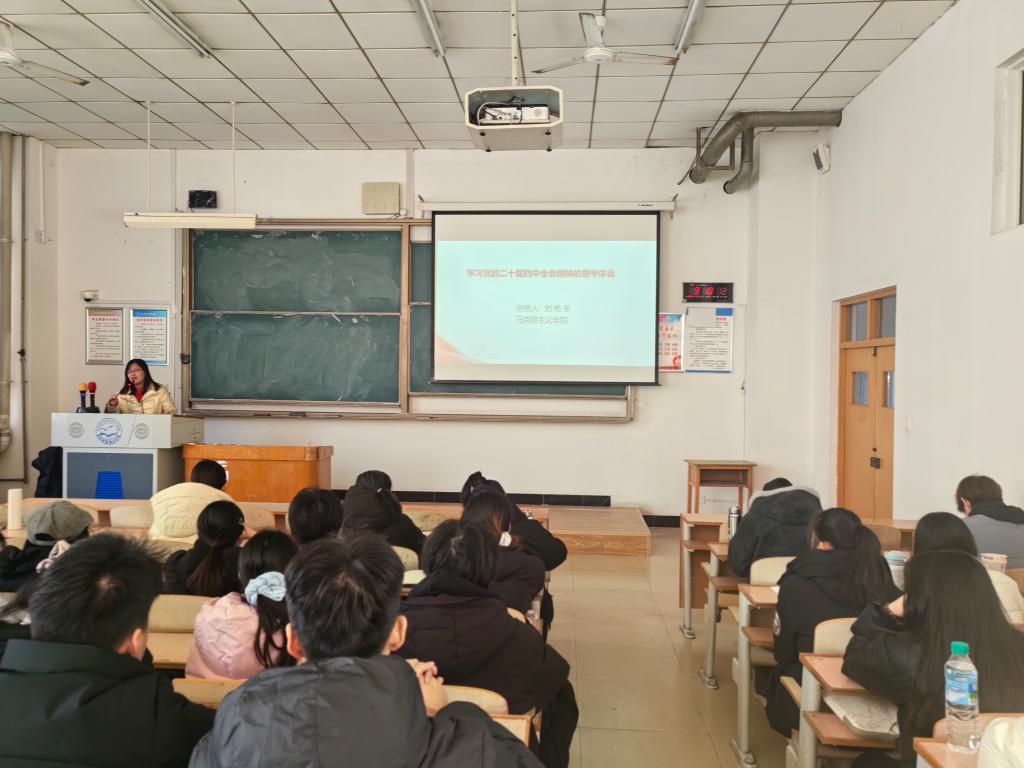 2025年12月25日,tyc7111cc太阳成集团在秦皇岛校区逸夫楼A111教室举办了党的二十届四中全会精神宣讲报告会。本次报告会邀请了学校思想政治理论教育宣讲团成员、马克思主义学院副教授杜立文、刘艳冬作宣讲报告。共有100余名师生党员参加了此次宣讲会。